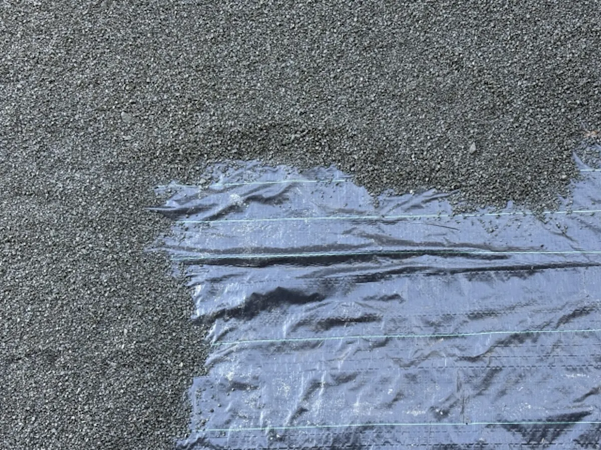石同士がしっかり重なり合い、下地の防草シートが露出するのを防ぎます。